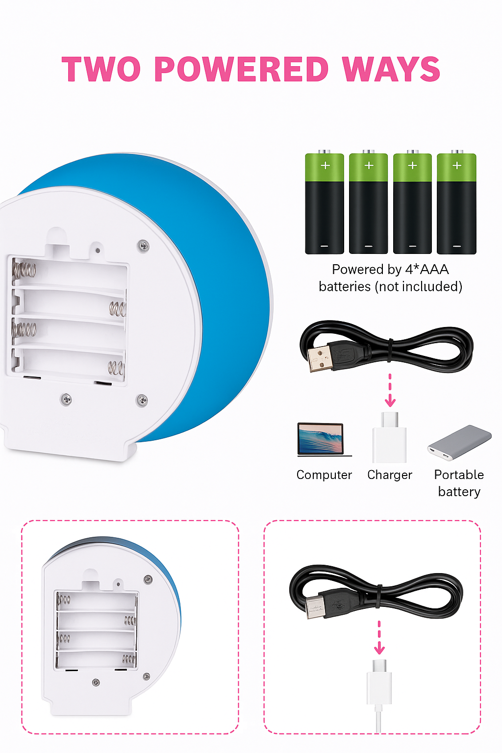 ⚡ USB Powered – Works with adapters, laptops, or power banks.